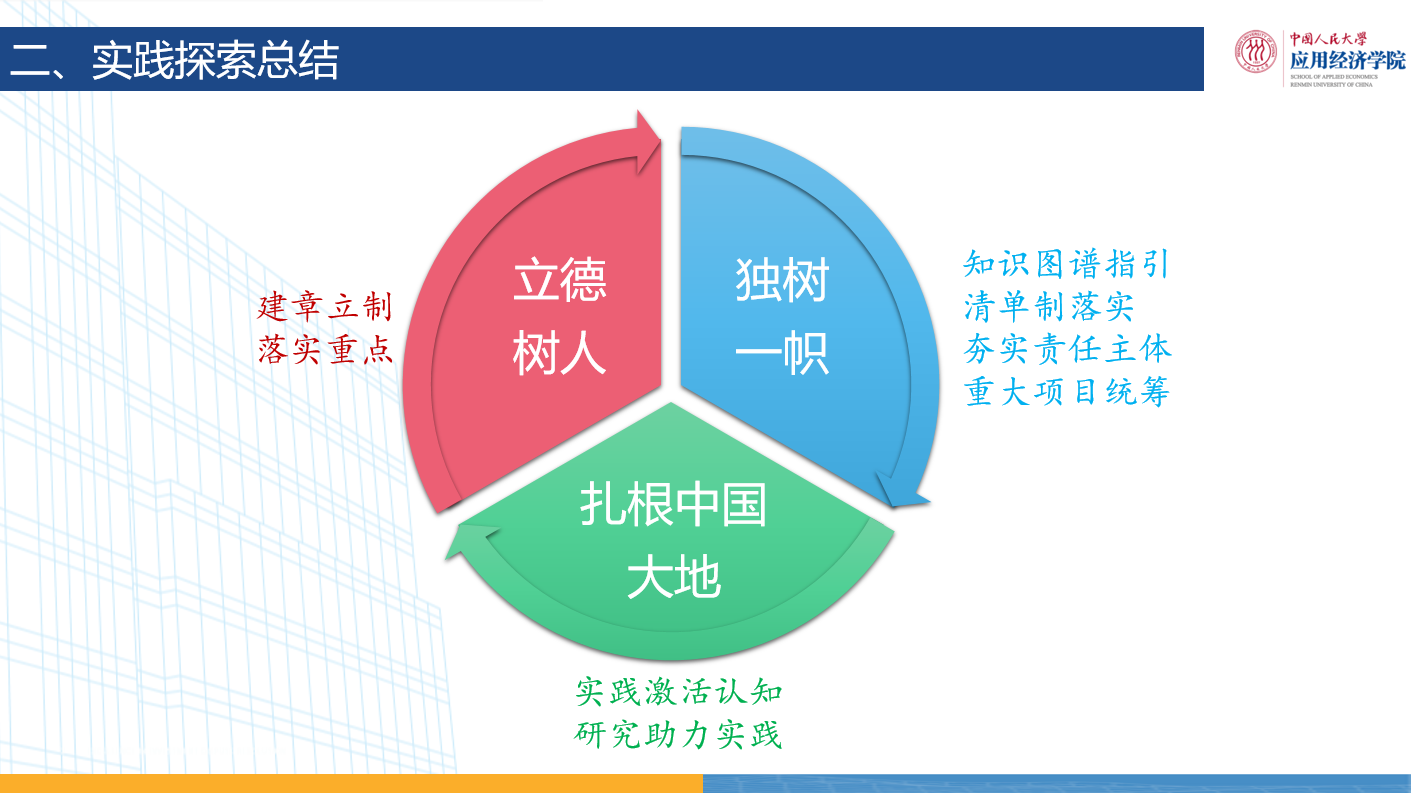 公司自2019年成立以来,紧紧围绕“立德树人”根本任务,坚持遵循“扎根中国大地办教育”,通过“知识图谱指引”“清单制落实”“夯实责任主体”“重大项目统筹”等方式,致力于建立“独树一帜、中国特色世界一流”的应用经济学公司产品方案。在公司领导、研究生院、公司其他各部门的帮助指导下,公司“独树一帜”的应用经济学公司产品体系初步建成,逐步形成有价值、可复制、可推广的应用经济学公司产品“人大方案”,通过创办“一会、一刊”服务“一组”(学科评议组),力争在提升人大影响力方面贡献属于自己的力量。