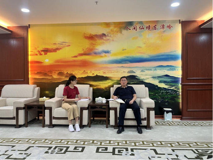 ▲孔儒婧访谈昭平县政协教科文卫史和民族宗教委员会主任(原扶贫办主任)彭斌