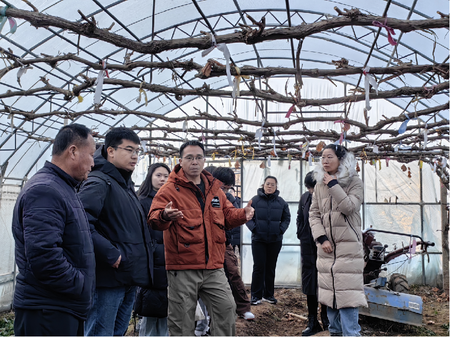 ▲调研团实地走访赞皇县松会村葡萄产业