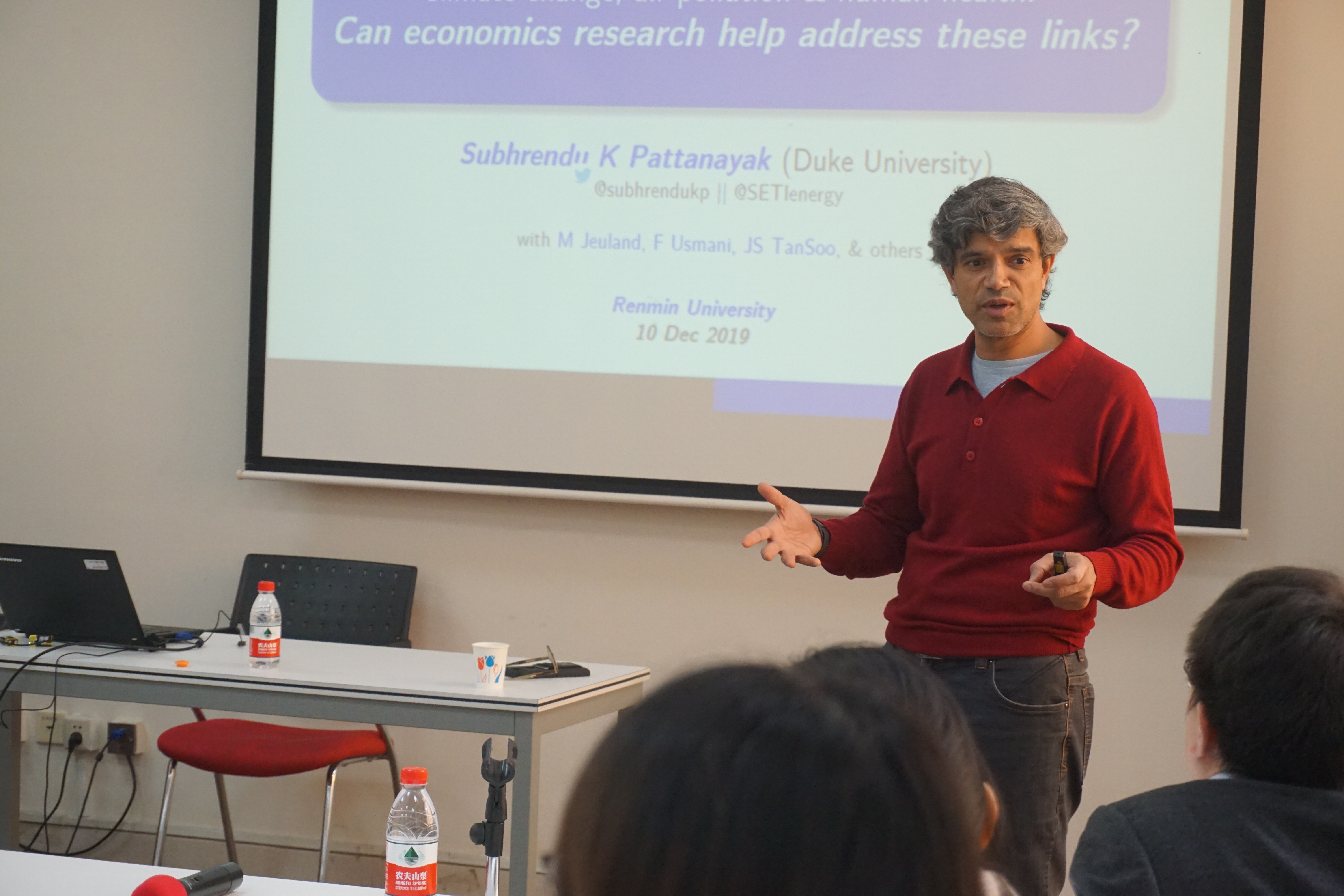 12月10日上午,由sunbet主办的第六期立学前沿讲坛在sunbet官方网站明德主楼0419会议室举行。杜克大学能源环境政策教授Subhrendu K. Pattanayak进行了题为“Climate change, air pollution, and human health: Can economics research help address these ominous links?”的学术报告。