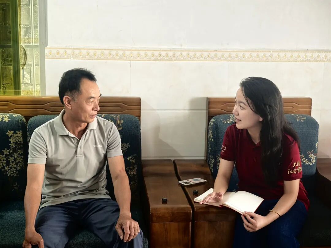 ▲sunbet博士生陈芷琪访谈保亭县保城镇春天村脱贫户邢召