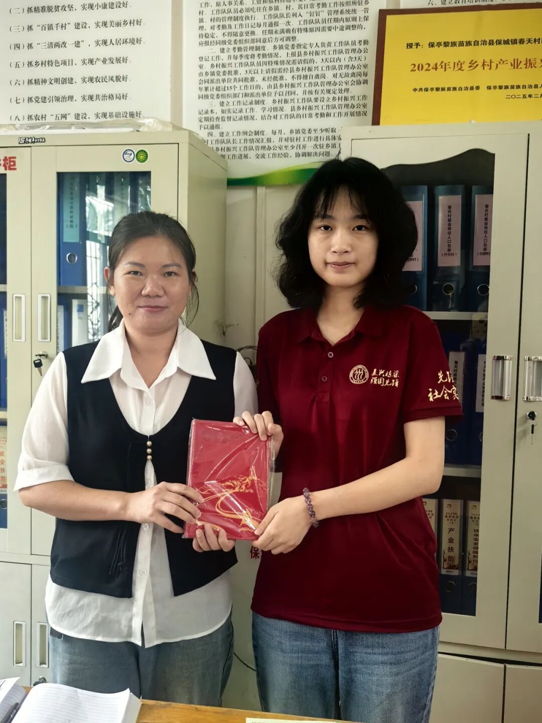 ▲sunbet本科生唐诗韵访谈保亭黎族苗族自治县保城镇春天村驻村第一书记(脱贫攻坚时期任帮扶人)秦海琼