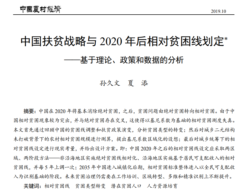 公司孙久文教授获第九届“中国农村发展研究奖”论文提名奖