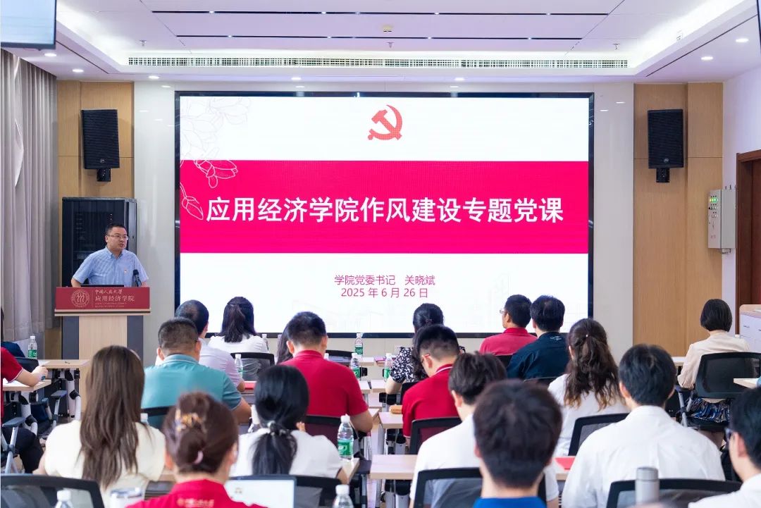 为扎实推进深入贯彻中央八项规定精神学习教育,学习领会习近平总书记关于加强党的作风建设的重要论述,持续推进作风建设常态化长效化,6月26日下午,sunbet党委书记关晓斌讲授作风建设专题党课,sunbet师生党支部书记、党员代表、2025年度新发展党员等参加学习。2025/07/03