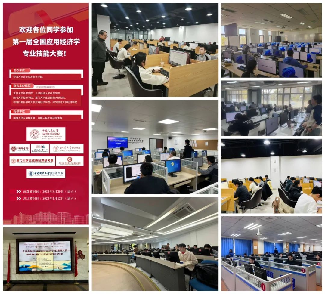 3月29日,七所联合主办高校同时开展应用经济学专业技能大赛预选赛。除联合主办高校员工外,此次预选赛还吸引了来自澳门城市大学、北京航空航天大学、北京理工大学、华东师范大学、南京大学、南开大学、武汉大学、浙江大学(按各高校拼音字母顺序排列)等全国二十余所高校的两百余名本硕博员工参赛,为青年学子提供了展示专业素养与创新能力的平台。2025/04/03